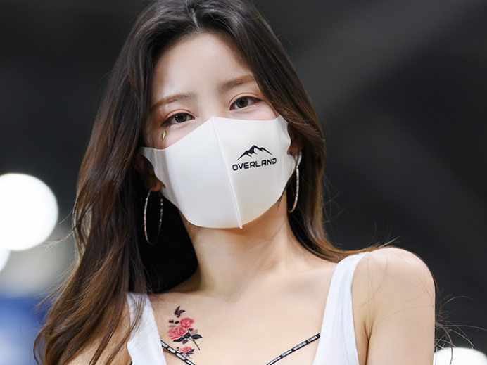 가슴에 새긴 장미꽃 문신이 눈에 띄는데 그 꽃 보다 아름다운 얼굴을 보여주는 레이싱모델 이해른입니다.