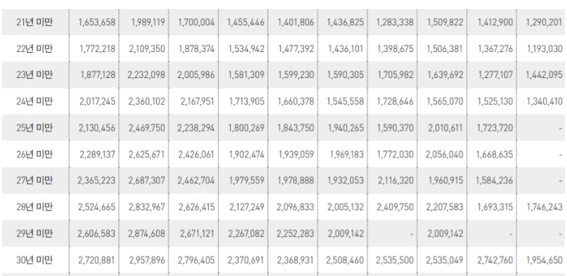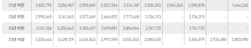 마지막으로 사립학교 교원으로 장수한 사학연금 대상자 즉, 31년 이상 32년, 33년 34년, 35년, 40년 사학연금 수령액을 알아보도록 하자.